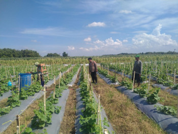 Bhabinkamtibmas Desa Sidokepung Dampingi Petani Terong Demi Ketahanan Pangan